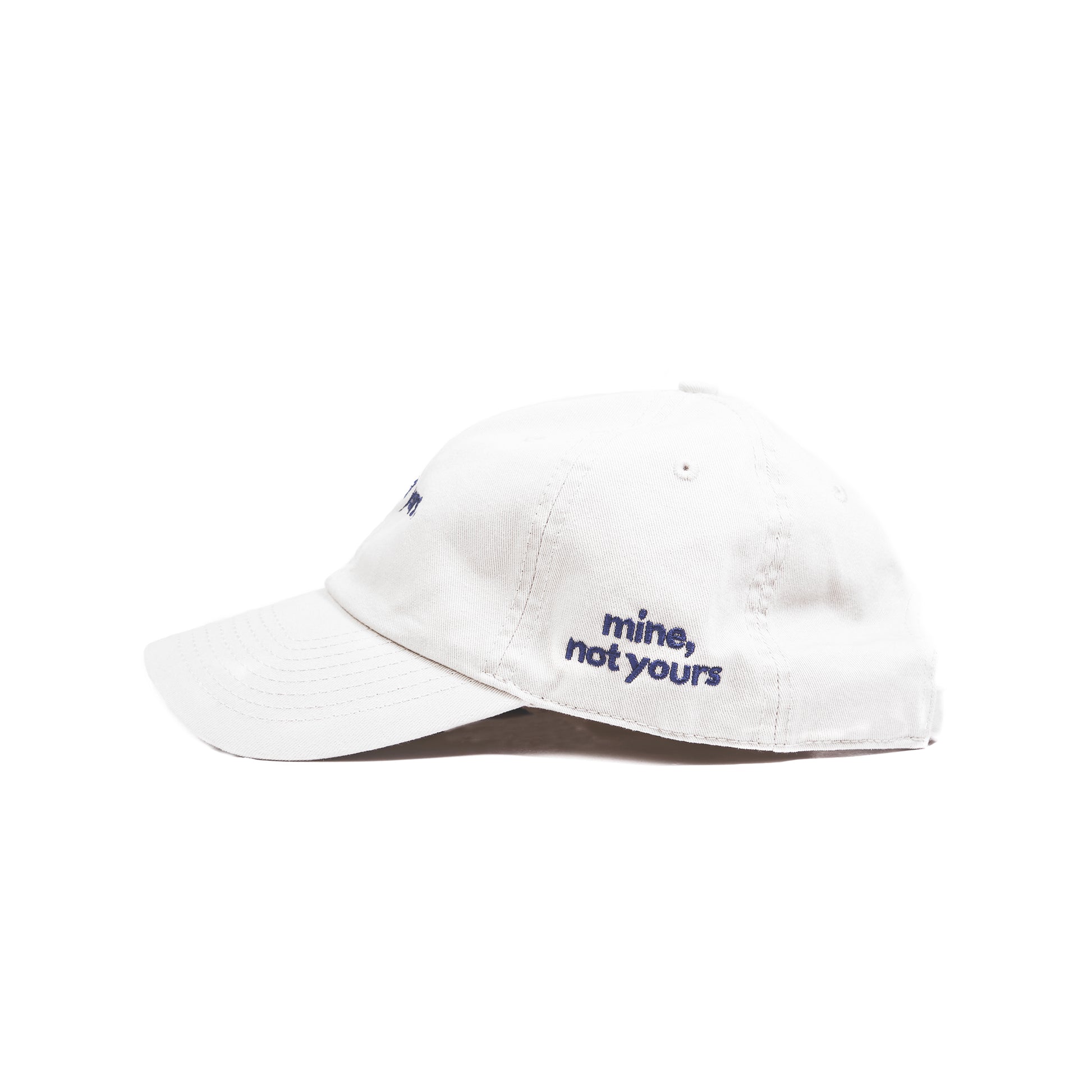 - Custom embroidery on the front and on the side with navy blue